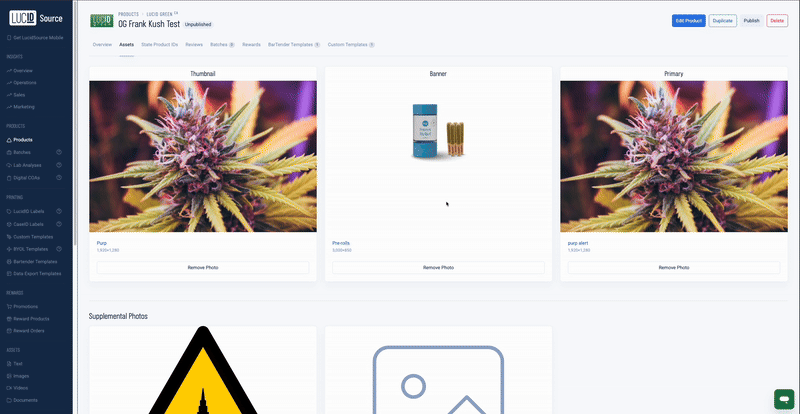 The Thumbnail & Primary are the same image, and the Banner is a 3x1 version of that image. These image uploads are typically a square product photo. These images will enhance the user experience in and out of the store, as it creates a more detailed user friendly page on our app. Overall, consumers get access to all the relevant information they need to have a safe, consistent and enjoyable experience by scanning the LucidID on the cannabis product on their phone.