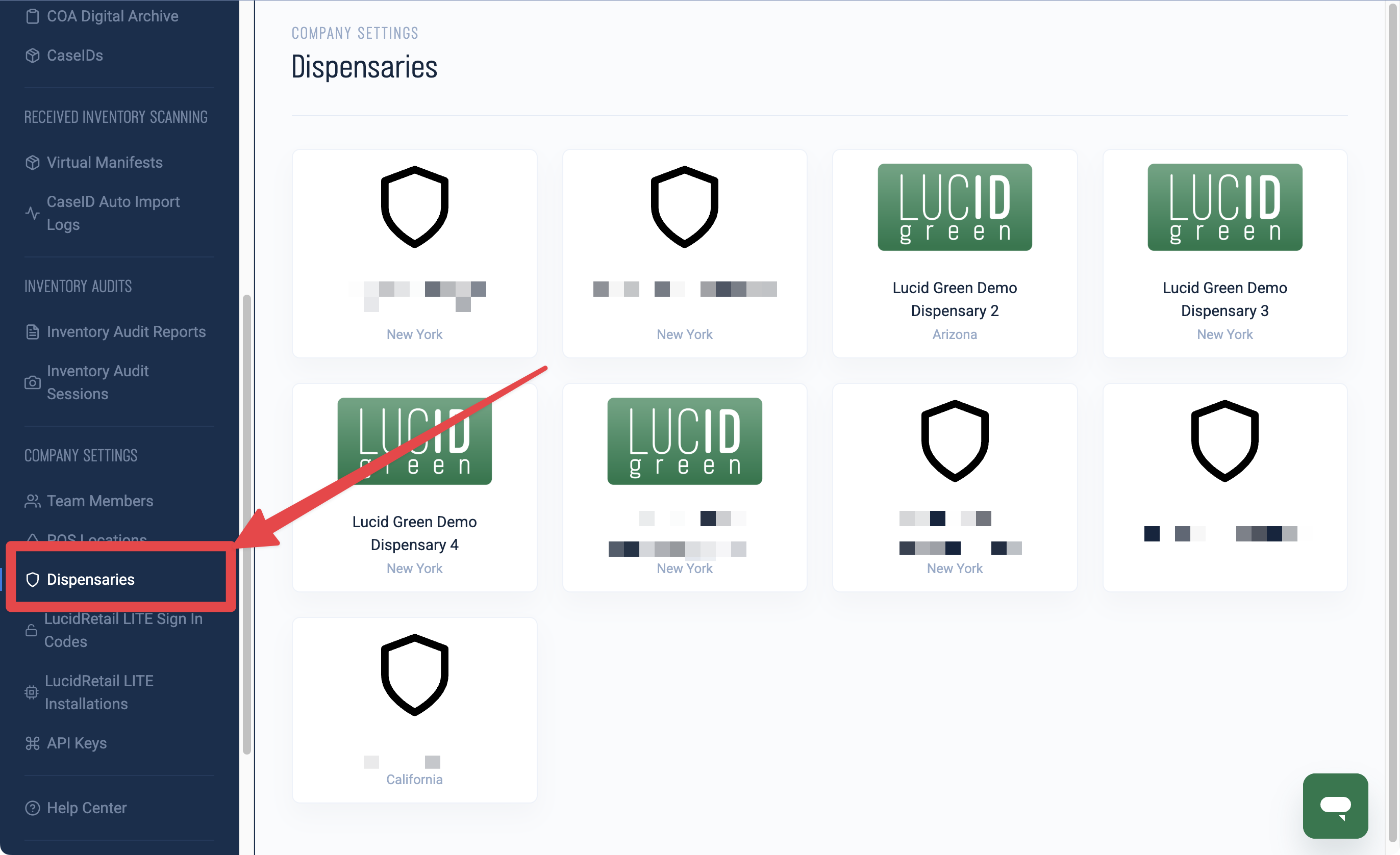 To find the list of Dispensaries that are available under your account, you must sign into the LucidRetail Console using a Company Admin account.