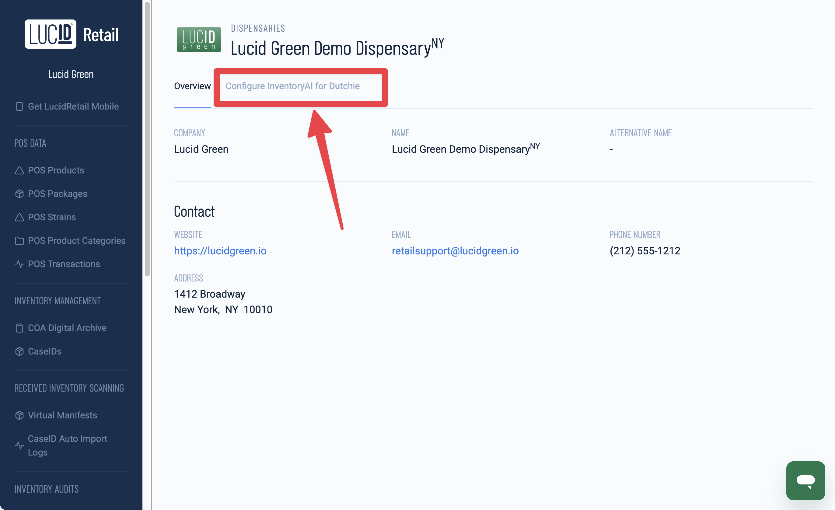 If the Dispensary has InventoryAI enabled, this page will also include a tab that enables configuring InventoryAI: