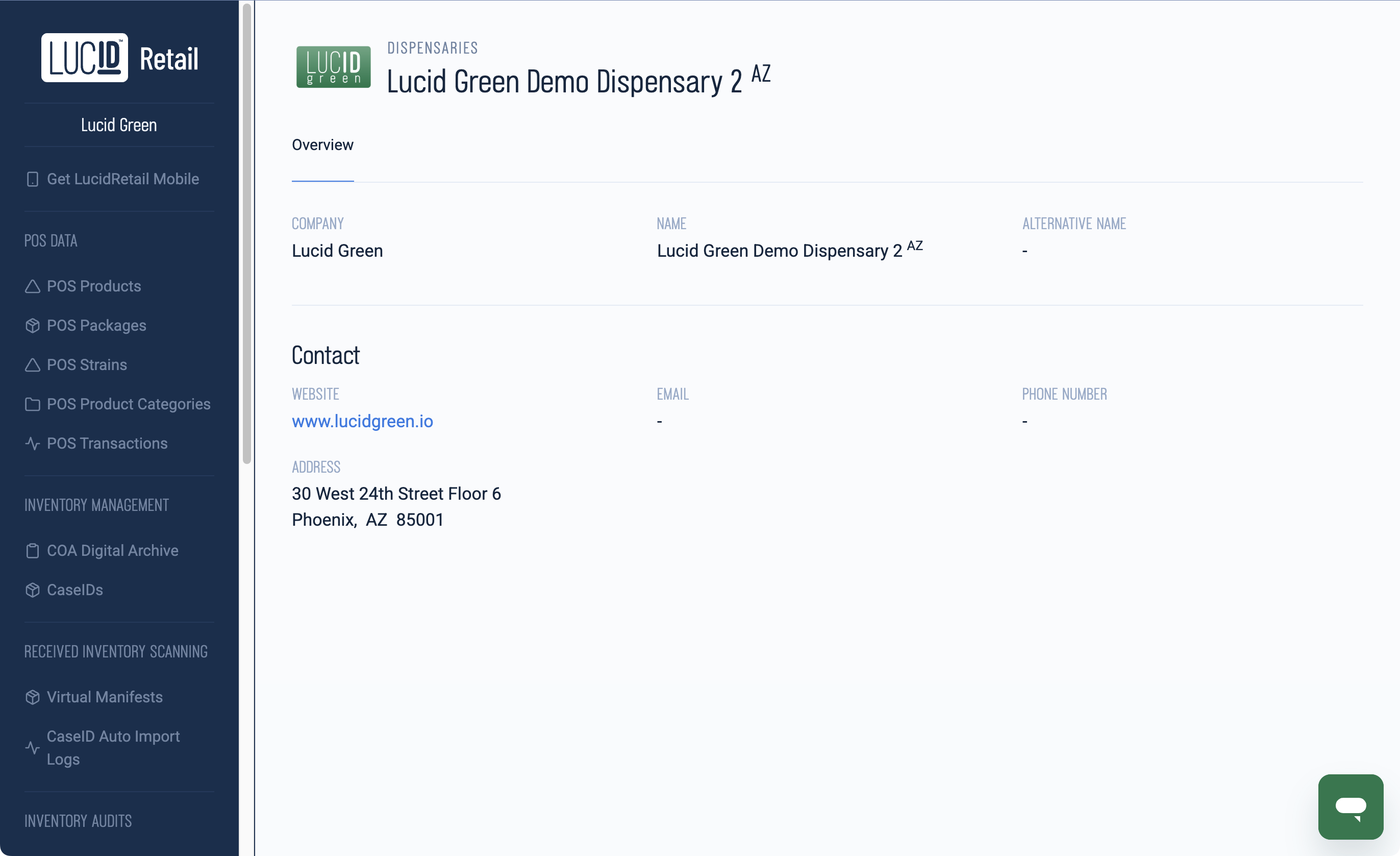 To review the settings and make changes to a specific Dispensary. Click on the Dispensary card to view the Dispensary Details page: