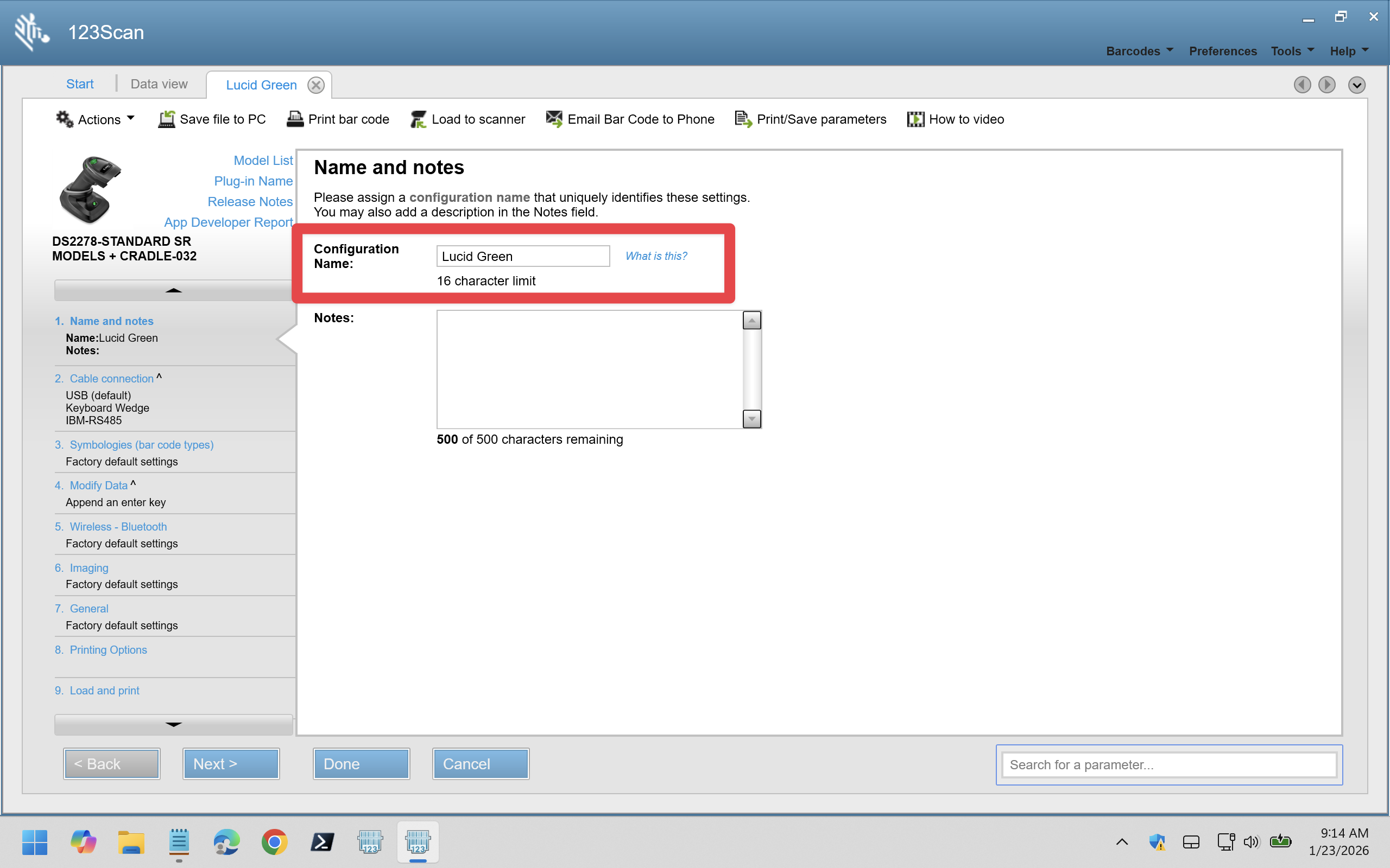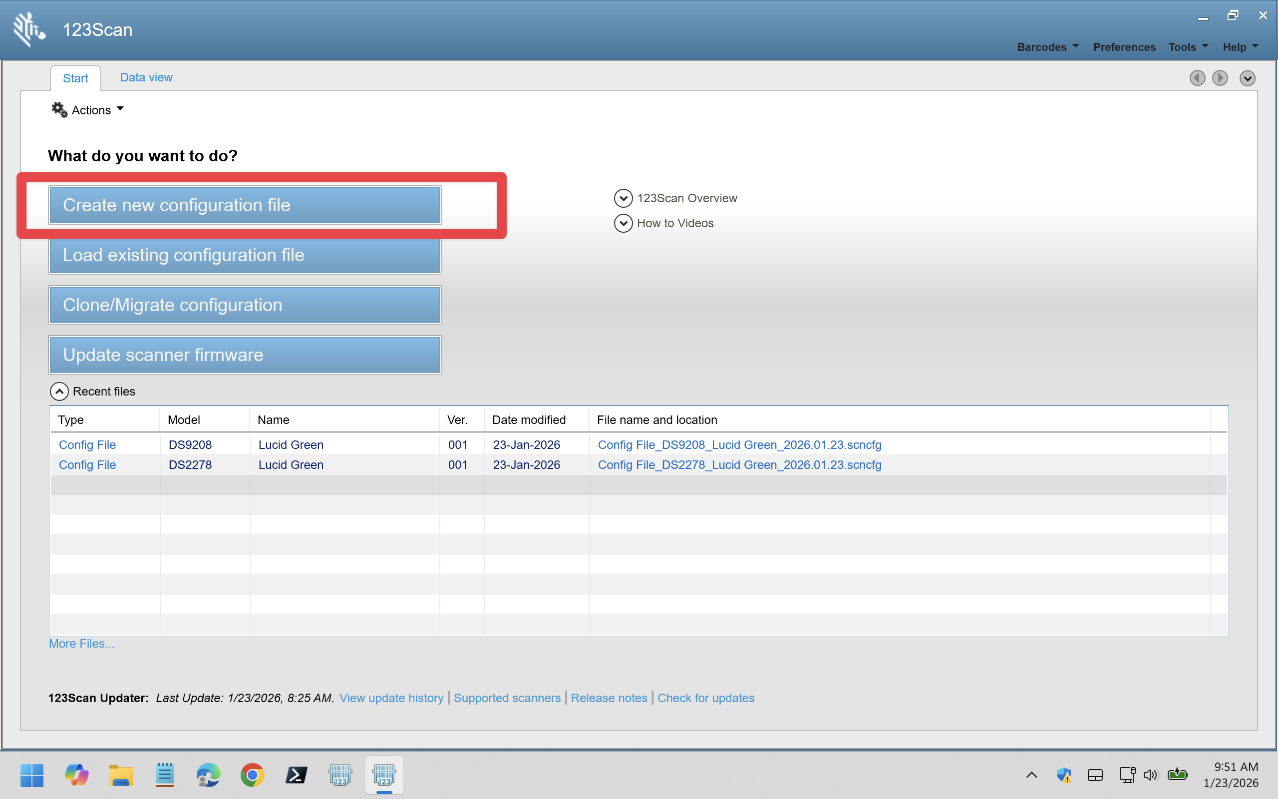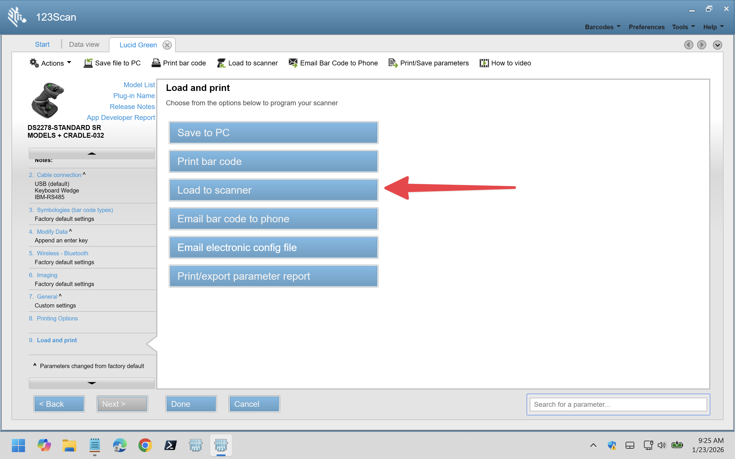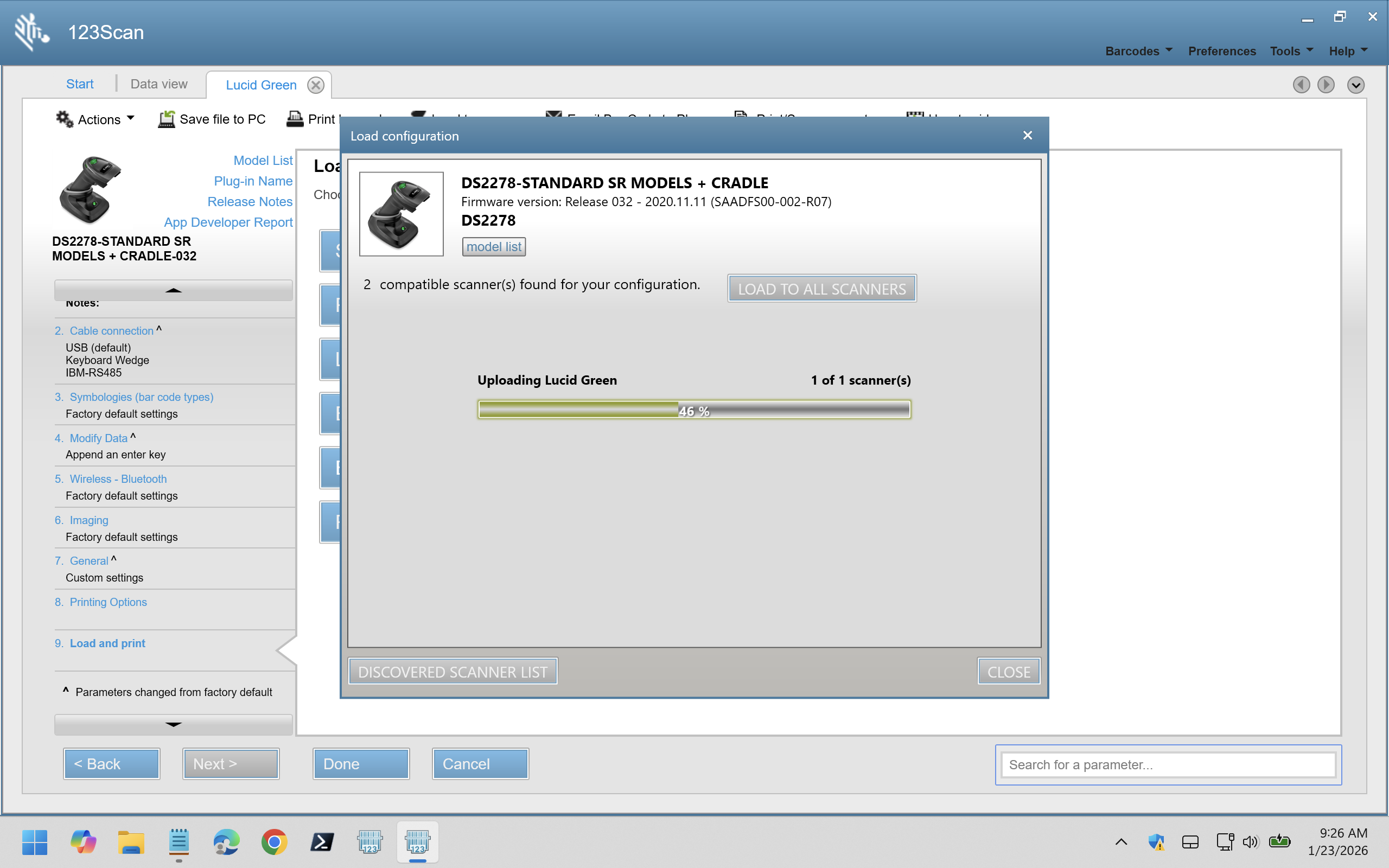 Click the Save to PC button to save the configuration to be able to load it in the future to configure additional scanners. Click the Load to Scanner button to program a connected scanner.